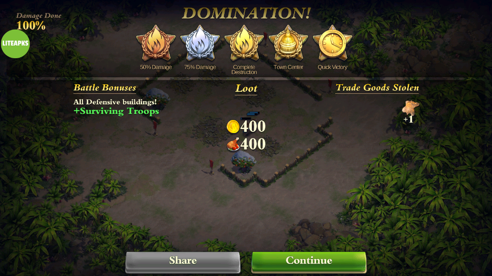 3、胜利之后可以获得大量的黄金和食物。