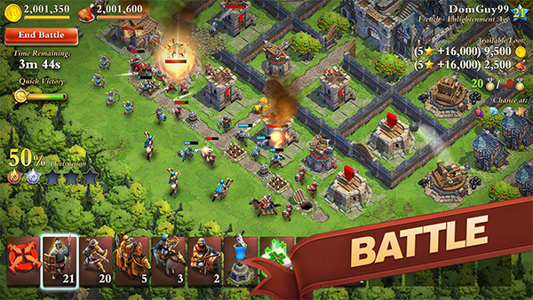 【模拟战争游戏:穿越时代的战斗】 • 模拟游戏允许您建立一支军队,并带领一群早期猎人和采集者进行征服,从文明的黎明到现代。 • 建立一个基地,从一个小型文明开始,将其发展成为一个繁荣的大都市。 • 建造世界历史奇观,包括埃及金字塔和罗马斗兽场等著名地标。 【建立帝国并领导军队】 • 在战争时代扩张您的王国并保卫您的国家。 • 在穿越时空的旅程中,作为 8 个可怕国家之一征服世界。 • 选择历史上最伟大的文明之一,如罗马、英国、中国、法国、德国、日本、韩国和希腊。 • 随着您在历史中前进,升级您的帝国,应对历史战役以收集重要资源。 【战略战争游戏中的 PVP 战斗】 • PVP 战斗等待着您。 • 与敌人作战,占领城市,获取大量战利品! • 多人战争允许您与其他熟练的统治者组队,建立一个不可阻挡的联盟。 • 释放您独特战斗策略的全部力量,在 50 对 50 的联盟战争中智取对手并在持久战中胜出。 • 在世界大战中征服全球,将战利品带回家! • 通过战争机制进行资源管理。为数不尽的财富和完全的世界统治而战。 【探索新技术】 • 研究文明、新材料、发明先进武器并发展贸易以发展繁荣的经济。 • 通过科学发现升级。 • 加强你的战争基地,用更好的装备增援你的部队,用现代材料升级你的建筑和城镇中心。 【与世界历史交织的策略游戏】 • 历史游戏可让您与历史上最伟大的思想家和领导者一起工作,例如达芬奇、埃及艳后、世宗大王和其他开拓者。 【全新的活动和时代】 • 策略游戏,根据历史中的实际事件,提供有趣的限时目标。 • 收集稀有奖励,帮助您的国家进步,征服世界! • 在每个时代升级您的基地和军队。DomiNations国际服游戏新手教程