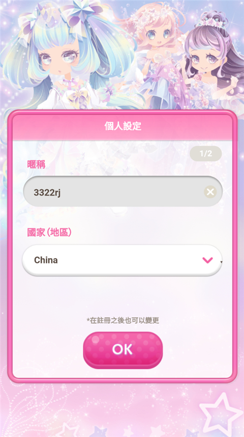 1、打开进入明星女孩时尚秀游戏选择昵称以及地区,目前支持中国地区哦~