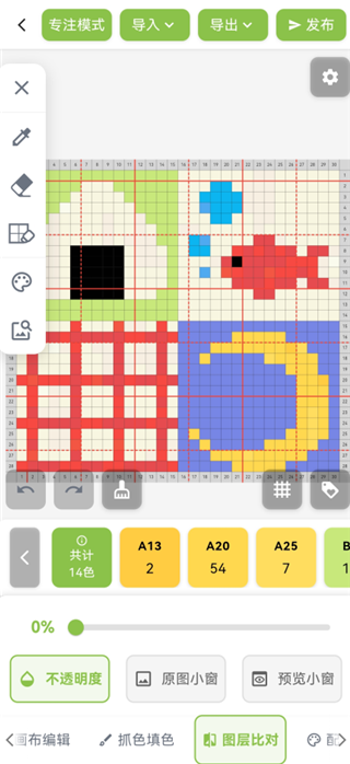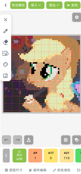 5、颂拼豆App会自动生成像素图纸,这里不建议使用自动生成的图纸,会有很大的色差。