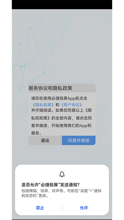1、下载安装必捷投屏app后,需要开启手机的悬浮权限