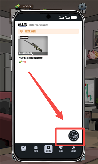 7、在新的一周,来到【出售】中,点击【上架】。