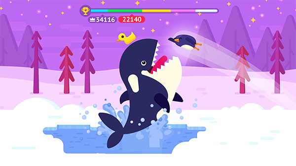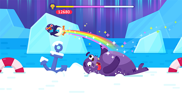4、在企鹅落地到海豹身上的瞬间点击屏幕,海豹会将其弹飞;