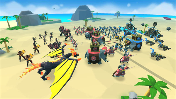 1、排兵布阵:你可以自由的选择各种士兵单位来开始战争; 2、万人作战:你可以派遣上万的单位士兵进入战场; 3、趣味士兵:各种各样的生物都可能成为你的单位,可能是小鸡、可能是圣诞老人也可能是远古巨龙; 4、庞大场景:要容纳这么多人的战场也一定非常广阔了,而且战场也会有地形和悬崖等等,坠落会杀死你的士兵。史诗战斗模拟器2手游玩法