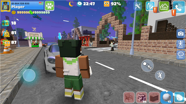 1、制作和建造: 许多美丽的豪宅,拥有大片土地,你可以拆除已购买的房屋,建造你梦想中的小屋。 丰富的各种积木供你建造和装饰。 数百种家具,满足各种品味:椅子、桌子、沙发、床、衣柜等等。 门、室内植物和吊灯将为您的家居设计锦上添花。 2、玩家关系: 别担心,您在城市中并不孤单。 城市里有成千上万的人,您可以与他们交流、交朋友、 一起散步、去餐厅和公园、一起驾驶超级跑车、在夜总会消磨时光。 如果您喜欢某个角色,请将他添加到电话簿中,并随时通过短信与他联系。 3、彩弹射击: 丰富的彩弹射击武器选择: 迷你枪、手枪、突击步枪以及独家的恐龙枪、鲨鱼火箭筒等等。 所有这些武器都会发射带有颜料的彩色子弹。 射击那些偷走您金币的流氓,他们会把金币还给您。 4、有趣的地方: 市场(家具、积木、门、皮肤和彩弹枪) 迪斯科(点播DJ音乐,与好友共舞) 大型公园 配有日光浴躺椅的海滩和大海 餐厅和电影院 学校和银行 汽车经销店和加油站 城市泳池派对世界游戏新手指南