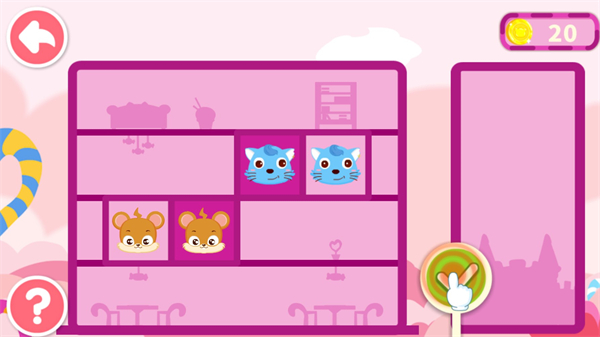 1、脑力锻炼 根据客人之间的关系,巧妙安排住宿! 2、丰富关卡 40+任务关卡,收集客人信息,巧妙安排住宿,化解矛盾! 3、三大主题 雪糕大陆、奇妙森林、魔幻河域,等你来探索! 4、常识认知 猫、老鼠是天敌,狗爱吃骨头……在互动中了解常识! 5、多样激励 收获金币,升级旅馆,解锁宝箱……让宝宝爱不释手!游戏特色