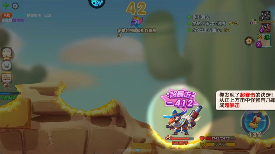 从正上方击中怪物有几率成超暴击。