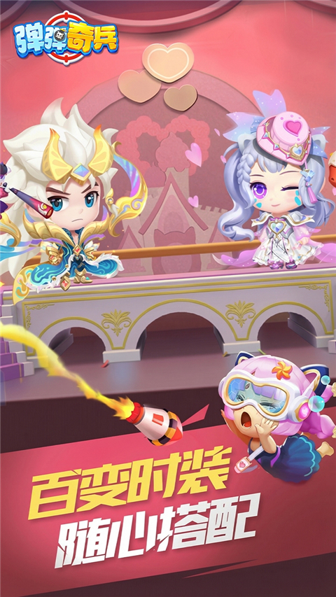 1、百变弹射玩法 多种弹射技能战斗,经典的挖坑高抛技巧、创新的多种技能道具! 2、超强悬赏BOSS 击败boss获得海量道具奖励(酷炫时装,强力武器,实用道具) 3、百变时装 超多时装随心搭配,更有特殊时装+武器的酷炫大招组合。 4、精彩PK+团队协作 实时语音敞开双手对战,团队合作更加轻而易举,和他还有她一起战胜不一样的敌人!游戏截图