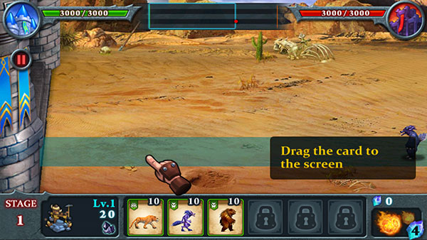 5、消耗资源将猛兽卡牌拖动到场地上即可使其自动发起攻击。