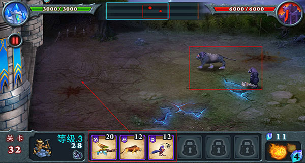 5、战斗策略。不要急于召唤兽王,待对手的兽王接近我方城堡时再应战。将战线控制在我方,有利于新兽王快速加入战斗,形成以多打少的局面,减少兽王的损伤。
