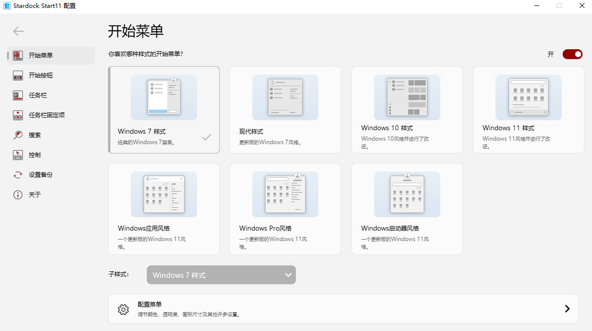 2、如果你喜欢调整自己电脑的开始菜单风格,可以通过Start11软件自由配置。