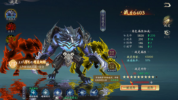 4、游戏内有炫酷的战灵可以激活,玩家可以对其培养进阶,让它和你一起战斗冒险。