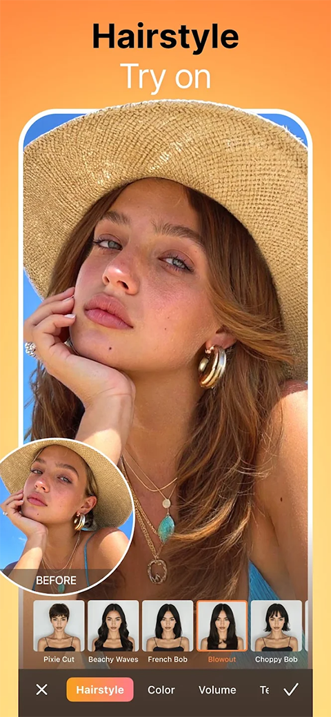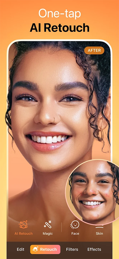 一、每个镜头都表现出色 1、AI Retouch、自动升级您的肖像画,使每个细节都达到完美。 2、牙齿美白——瞬间绽放笑容。 3、祛痘–立即清除粉刺和瑕疵,打造无瑕肌肤。 4、光滑、软化皱纹,均匀肤色,焕发青春光彩。 5、高亮、通过添加纹理和光泽来突出你的最佳特征。 6、重塑——毫不费力地微调你的面部和身体比例。 7、塑造面部轮廓——提升面部轮廓,让自己始终看起来最好。 8、眼部增强剂–修复红眼、去除眼影或改变眼睛颜色。 9、虚拟化妆——应用人工智能化妆,打造精致妆容。 10、发型设计–在AirBrush中探索新鲜的发色和时尚的发型,从大胆的亮点到柔和的波浪。 二、激发你的想象力 1、背景编辑–轻松模糊、替换或增强背景。 2、AI橡皮擦、在几秒钟内删除不需要的对象。 3、AI增强器、自动调整亮度、饱和度和温度。 4、滤镜和效果–使用令人惊叹的滤镜和艺术效果转换您的照片。 5、AI修复、恢复低质量的图像,让每一个细节都栩栩如生。 三、视频自拍重新构想 1、面部修饰——对视频进行实时美化。 2、对象移除–消除场景中的干扰。 3、质量提升–提高视频清晰度,打造清晰电影感。 四、与AI一起享受 1、Pro Headshots–立即生成工作室质量的头像。 2、Mood Swapper、通过AI驱动的情绪调节来改变表情。 3、风格探索者、在不同的风格和艺术肖像中看到自己。 五、释放你的全部创造力 1、300+独家预设和妆容 2、400+滤镜和令人惊叹的效果 3、无限制访问所有程式化工具 4、100+高级功能和修饰选项AirBrush怎么编辑照片