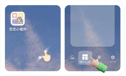 1、缤纷组件库 各色实用组件任君挑选:X-面板、仪表盘、照片、时钟、日历、天气、倒计时、纪念日、打卡、句子语录、便签、待办事项、每日心情、快捷工具等桌面小组件,满足您的日常需求,助您轻松美化桌面,让您的手机桌面与众不同! 2、个性化需求 不限个数,可放置多个不同功能、不同尺寸小组件,设计更自由; 背景随心设,支持自定义导入图片,每天不重样,给足新鲜感; 不拘泥设计,全透明小组件、动态太空人表盘、恋爱照片墙、炫酷X-面板等等,创造全新桌面; 一键添加,免去繁琐操作,桌面美化轻松搞定。 3、创新层出 扫一扫、乘车码、付款码等常用功能捷径,桌面点击快捷启动; 每日心情一点即换,让生活不再emo; 每日计划、日常打卡、节日倒数日、便签小组件,一键直达。恋恋小组件app使用指南