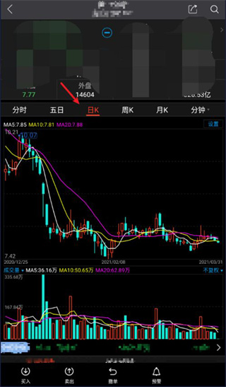 2、在“K线”上方选择“日k”。