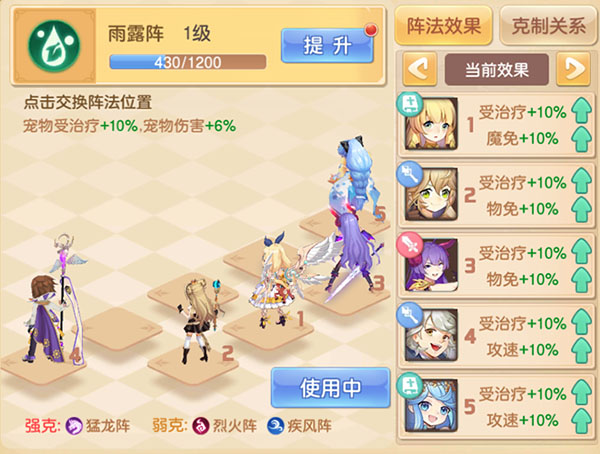 2、雨露阵-增加治疗效果,pvp遇到输出职业有奇效(强克猛龙阵)-建议升到3级