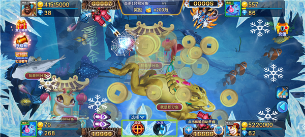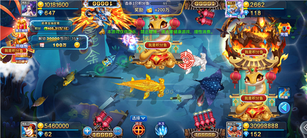 在炮台倍率低时,优先攻击密集小鱼群,利用散射特性批量捕获。