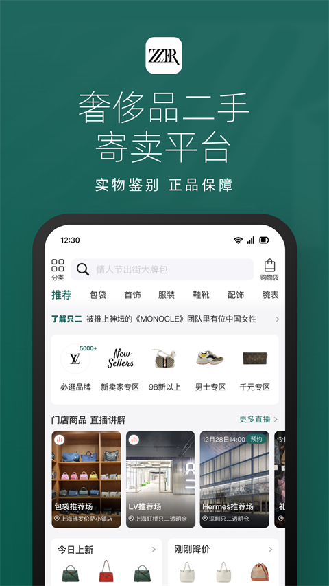 品类多,包包,首饰,服饰,鞋靴,配饰,腕表,上万件二手奢侈品,男士女士均能在这里挑到自己喜欢的宝贝; 品牌全,从爱马仕、香奈儿、LV、Gucci、Dior、Celine、Goyard到Coach、MCM、珑骧全都有; 自助购物,ZZER只二APP自助扫码查价及自助买单; 正品保障,ZZER只二是持有中检资质的资深鉴别师,所有商品实物鉴别; 支持一站式购买和寄卖,包括线下门店和线上顺丰包邮,接受的寄卖品类含:包包、女装、鞋靴、配饰、首饰、腕表等; ZZER只二APP推出直播讲解(点播)服务,来不了线下门店的用户,可以让讲解员帮忙过所有门店寄卖商品的成色、瑕疵,还可以上身试背试戴,身临其境;更新日志