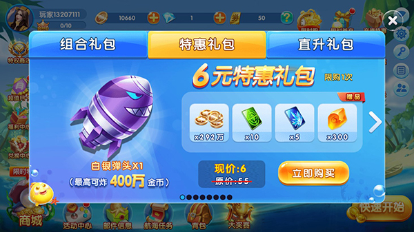 4、游戏内还有各种折扣充值活动以及特惠礼包,折扣价购买超值礼包,内含各种高级道具、上万金币等。
