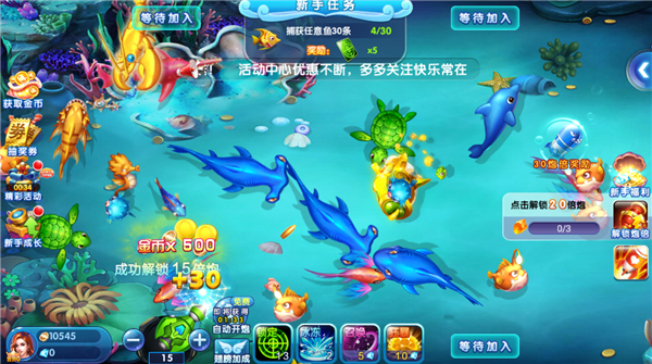 1、拥有海量人气活动以及超多任务,大奖赢个不停。 2、经典一网打尽,创新超高黄金稀有鱼,尽享经典和创新的各式玩法! 3、梦幻千炮捕鱼拥有全新酷炫万倍炮台,爆金翻倍。 4、100%移植街机捕鱼玩法,经典升级,捕鱼更刺激。 5、金币送不停,幸运奖金鱼会掉。游戏亮点