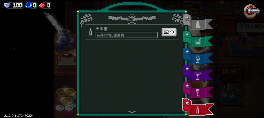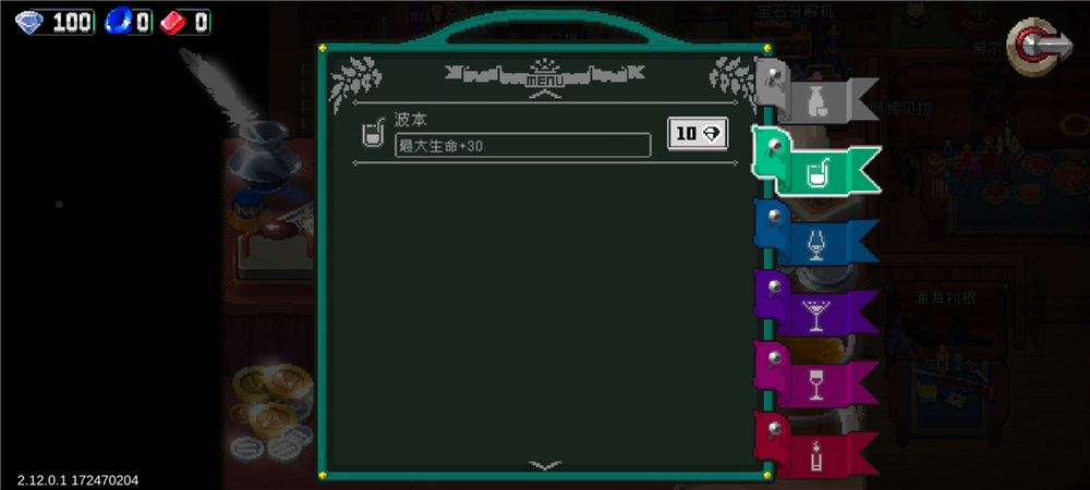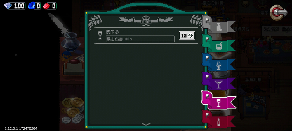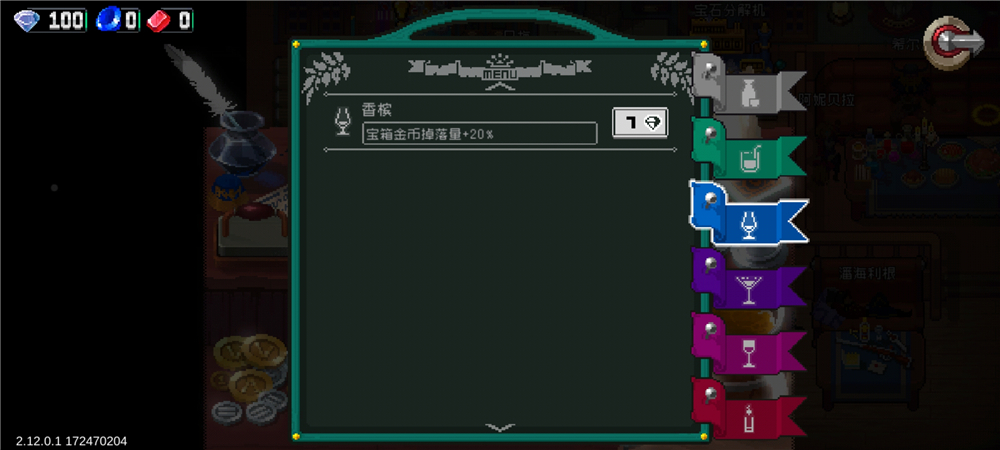 蓝色饮品可以增加玩家的金币获得数量,最高可以拥有50%的提升幅度。这里给大家说明下,游戏内的蓝红晶石属于特殊货币,这里的金币指的是再副本中击杀怪物以及开启宝箱掉落的,只能用来购买副本中的一次性装备(当然也能打死小卖部老板,直接拿完他的货)。