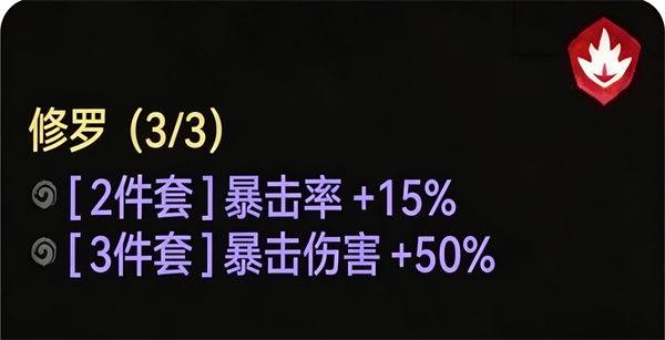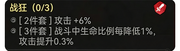装备:首选【修罗】三件套,其次【战狂】三件套。词条优先选择攻击率、爆伤、暴击。