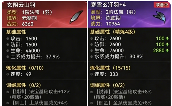 (1)炼化:需要消耗材料和灵石,提升炼化等级可以增强古宝的基础属性;