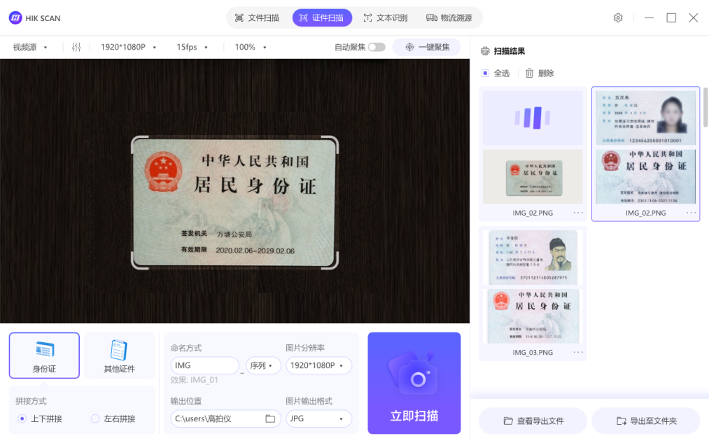 自动将证件的正反两面拍摄并合成到一张图上,支持横竖版式选择。