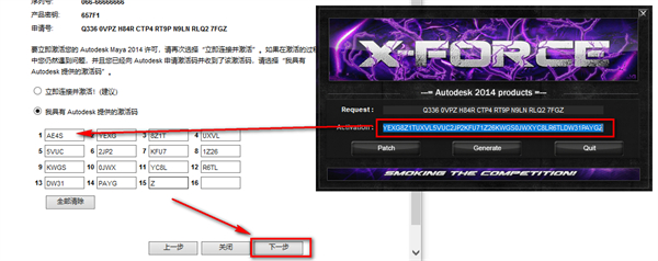 9、将生成的激活码复制到激活码输入框,点击“下一步”。