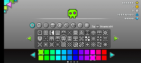 1、基于节奏的动作类平台游戏。 2、解锁新图标和颜色,个性化设置角色。 3、驾驶火箭,翻转重力以及更多。 4、使用练习模式以强化技能。 5、挑战自己,完成几乎无法实现的任务。游戏亮点