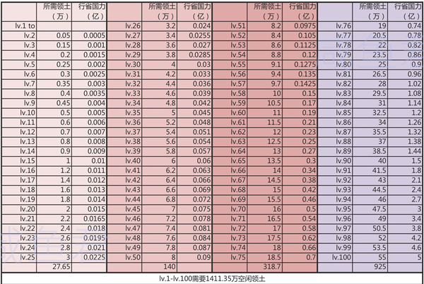 众所周知,所有孩子出生后八个小时既为一级,然后每三小时可培养一次。 1、下面就详细列出每级升级到下一级所需要的培养次数: 1~3级,每级需要培养2次。 4~8级,每级需要培养3次。 9~13级,每级需要培养4次。 14~18级,每级需要培养5次。 19~23级,每级需要培养6次。 24~28级,每级需要培养7次。 29~33级,每级需要培养8次。 34~38级,每级需要培养9次。 39~43级,每级需要培养10次。 44~48级,每级需要培养11次。 49级,需要培养12次。 2、根据上面的数据得出,培养一个10级的凡夫俗子总共需要培养25次。(其中10级的时候不需要培养,9级培养4次后即可达到10级封爵,因此将1~9级每级需要培养的次数相加既为培养一个10级的孩子所需要的培养次数) 培养一个20级的百里挑一总共需要培养72次。 培养一个30级的千载难逢总共需要培养139次。 培养一个40级的万众瞩目总共需要培养226次。 培养一个50级的旷世奇才总共需要培养333次。 3、如果每天培养6次来计算,凡夫俗子封爵需要5天。(包含初始8小时) 百里挑一封爵需要12天。 千载难逢封爵需要24天。 万众瞩目封爵需要38天。 旷世奇才封爵需要56天。 4、如果每天培养8次来计算,凡夫俗子封爵需要4天。 百里挑一封爵需要9天。 千载难逢封爵需要18天。 万众瞩目封爵需要29天。 旷世奇才封爵需要42天。更新日志
