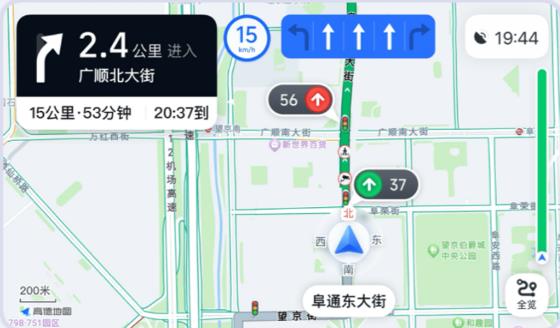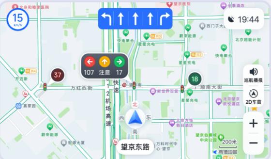 导航支持前方两个路口红绿灯显示。