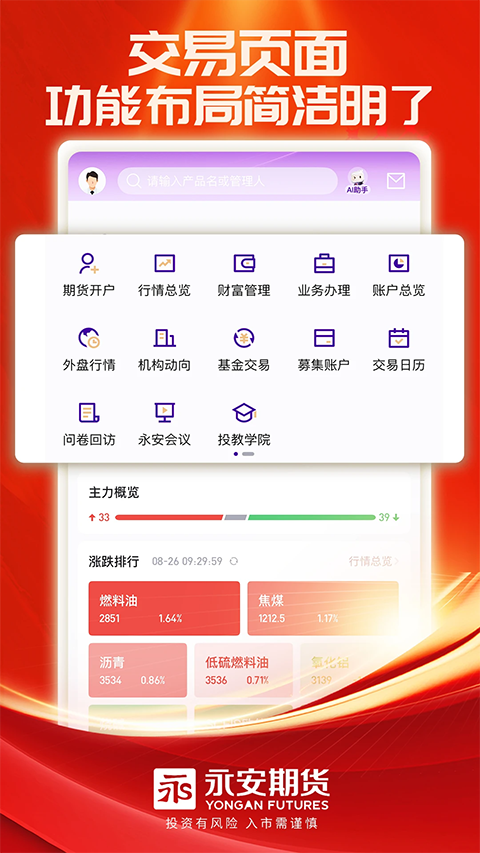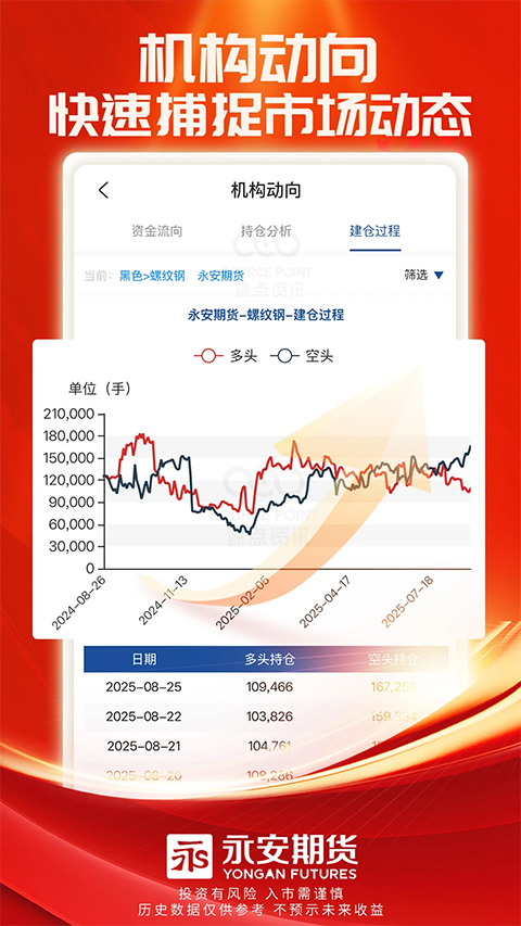 1、【全品种覆盖】 提供国际、国内各交易所期货品种行情资讯以及股市信息,支持国内包括中金所、上期所(含INE)、大商所、郑商所、广期所等全交易所品种交易。 2、【期货行情】 提供极速深度行情、多周期分析及多类指标图,及时了解国内外盘面期货行情,洞察市场热点、板块资金流向。 3、【极速开户】 轻松完成一站式在线免费开户,流程高效便捷。 4、【在线交易】 包括智能条件单、画线下单、三键下单、一键反手、闪电下单等特色功能,打造便捷快速的期货投资体验,满足各类个性化需求。 5、【深度分析】 包括基本面、龙虎榜、资金流向、库存仓单等可视化数据工具。 6、【高端理财】 优选明星基金产品以及多策略资管产品,提供专业资产配置方案,为您财富保驾护航。 7、【专业投研】 涵盖总部期货研究中心和北京研究院两大研究体系,立足产业链上下游,全方位跟踪产业数据,深度解读品种行情,专业研究分析三十年。更新日志