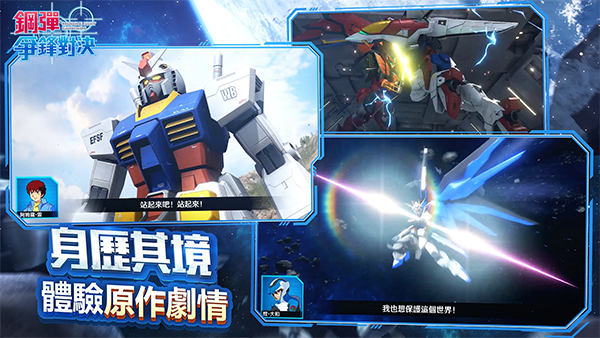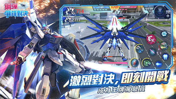 1、连携作战!组队挑战模式 全新版本的《敢达争锋对决》将会收录更多更强悍的boss级机体,来与组成小队的玩家们进行战斗。最多支持同一服务器内的3名玩家组成小队,可以挑战诸如比格·萨姆、精神力敢达这种具有压倒性战力的大型boss,一旦胜利,可获得高收益的奖励回报。 2、冠军的角逐!擂台赛模式 擂台赛共有进攻与防守两种游戏方式。进攻方玩家攻击由ai控制的防守方阵型,每天每个玩家可以进攻5次,进攻成功则双方排行榜位置互换,也可以通过道具购买的形式来多次进攻。擂台赛拥有专属排行榜,前1000名玩家可以荣登排榜。防守模式方面,根据每日玩家在擂台赛的排名,选择12台机体由ai控制,作为当日的守擂者供进攻玩家挑战。 3、强者磨练之道!探索模式 探索模式下可与不同作品中的敌人进行连续交战。每通过一定关卡数即可开启补给箱,获得专属货币奖励。并可选择一个增益buff,帮助玩家恢复血量或增强攻击,以应对之后的关卡,直至通关。敢达争锋对决台服机甲介绍