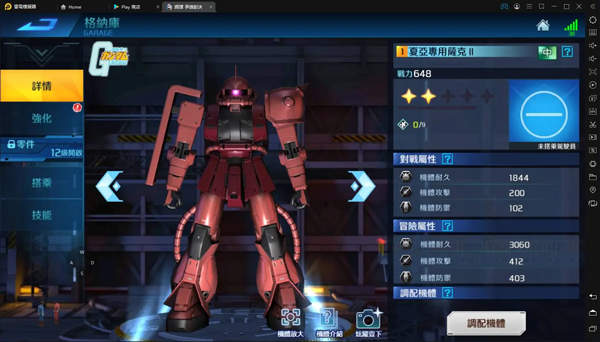 强化需要消耗作战纪录晶片和金币,根据指挥官等级机体就只能升至对应等级。升星需要7等开启系统,材料是机体碎片和金币,达到3星和5星可以解锁各一个胜利动作。如果重复获得机体系统会自动转化成碎片,以便于可以进行升星。