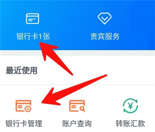 2、登陆成功之后,点击如图所示位置中的“银行卡”或者“银行卡管理”即可进入你的银行卡界面中,这里软件会自动将你的改行的银行卡绑定到该软件。然后点击图示位置中的银行卡。