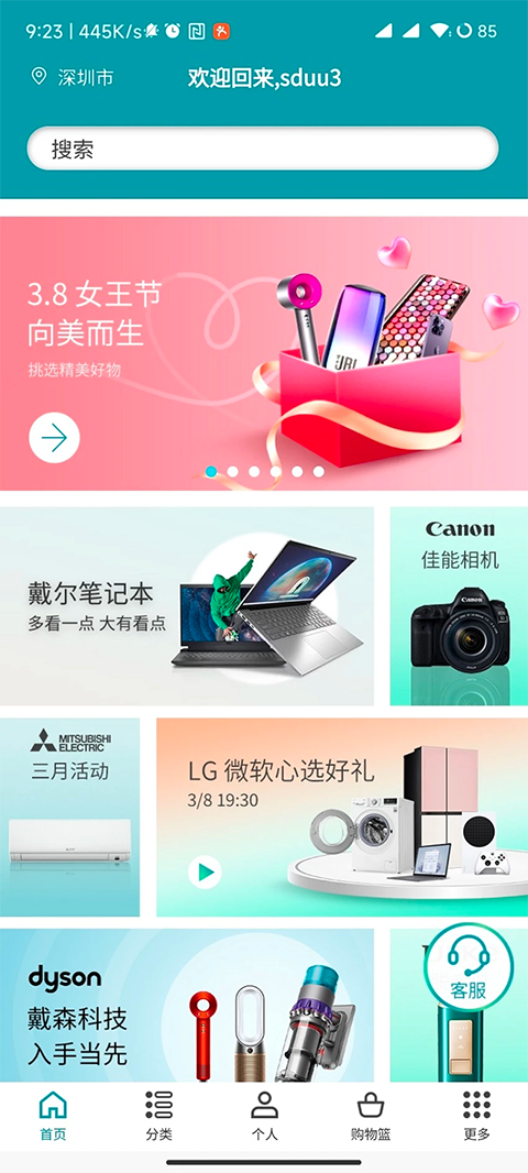 1、大家先打开app,在首页中挑选自己的心仪的商品,或者是大家也可以根据分类挑选自己需要的电器。