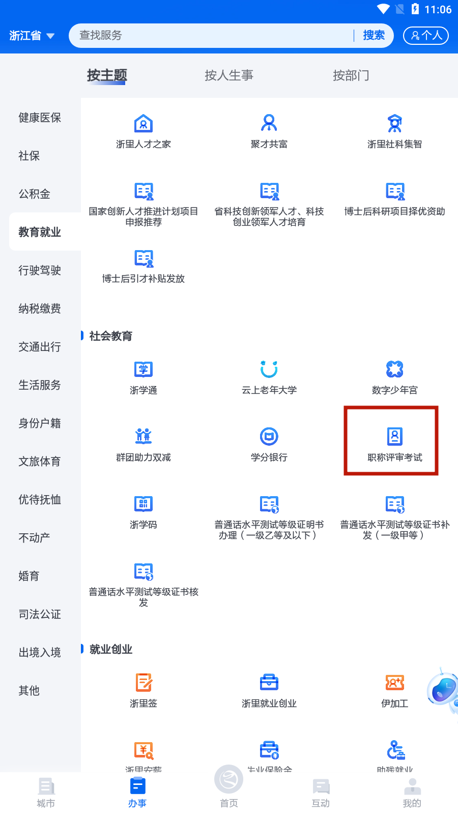 为全面推进数字化改革,加快互联网+人社,探索管理服务模式创新,实现专业技术人员资格信息数据共享,目前已经实现专业技术资格证书电子化,电子证书查询步骤如下: 1、手机下载“浙里办”APP并登录,点击“办事”栏。