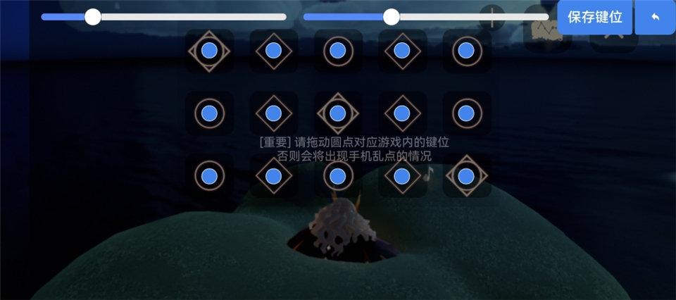 7、滑动下方的字点击【新建键位】,拖动键位和滑动上面的滑块将蓝色对齐键位,点击【保存键位】。