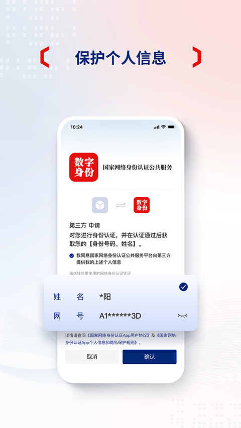 网号:与自然人身份信息一一对应,由字母和数字组成、不含明文身份信息的网络身份符号。网证:承载网号及自然人非明文身份信息的网络身份认证凭证。