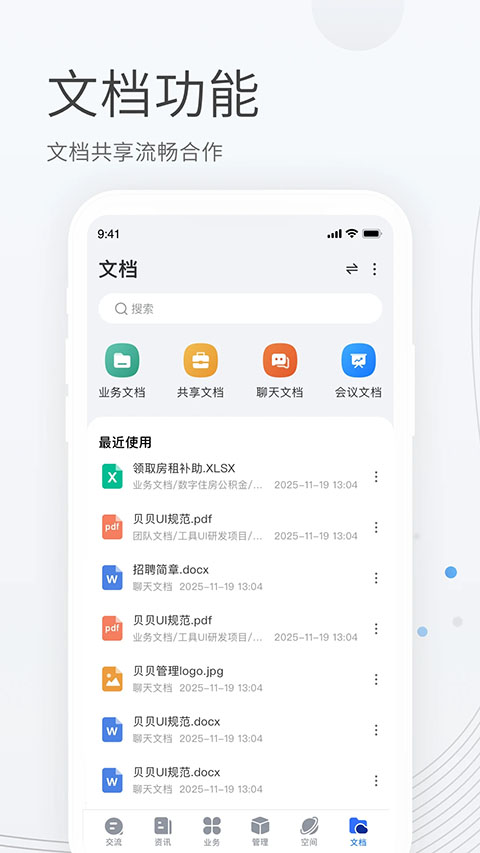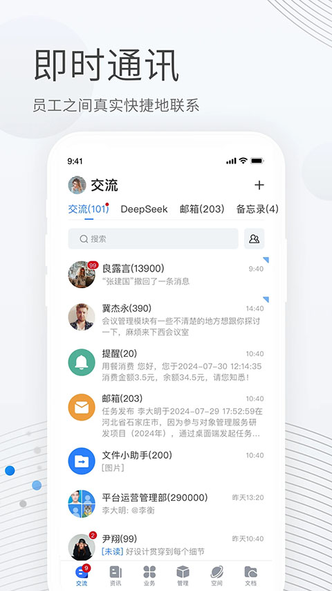 优化文档、个人中心、空间、导航、资讯、交流、视频会议等功能,提升用户体验。