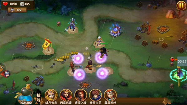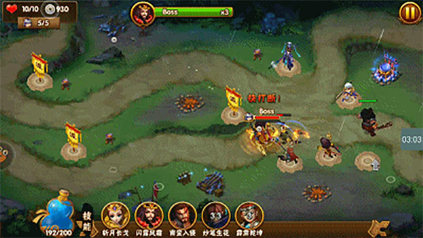 明白特点后,比如速度较快的狼群,我们可以释放波才的减速后对其进行致命打击;怪太多要绕过肉盾了,能释放孟获大招嘲讽小怪增加输出时间;怪物聚集的路口可以释放马云禄的大招进行群体清理;BOSS类怪物可以利用张角的高伤害进行打击。