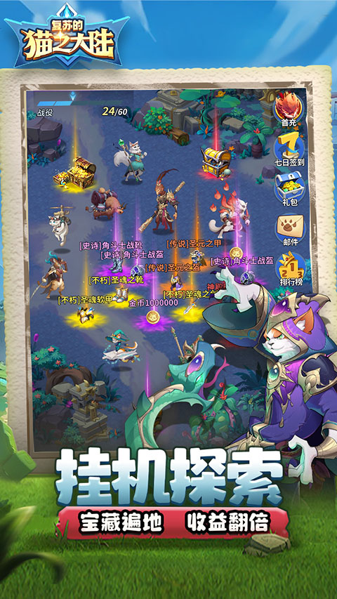 1、猫族遇难,少主复仇 身为猫族领主,父亲死在叔叔黑巫师的魔法下,侍卫们带你逃往静谧岛屿,你要如何带领你的子民复仇? 2、家园建设,从零开始 种植粮食,钓鱼伐木,收菜做饭,驱逐外敌。管理好你的子民,建设好你的岛屿,解锁各种神秘的古代遗迹。记住,作为执政官,繁荣的家园是你远征最有力的后盾! 3、驱除迷雾,唤醒大陆 黑巫师可不会让你轻松得逞!带领你的猫族英雄小队,踏上复仇之旅,不断击败拦路的黑暗爪牙,解锁各种神秘事件和奇遇宝箱,争夺沿路的村庄和资源点。 4、史诗英雄,为你所用 风火水土,光暗交织。数十位猫族传奇英雄为你助阵。寻求最佳的阵容搭配,打造最强神兵,能帮助你无往不利。更有关羽,秦始皇,悟空,哪吒等华夏神话史诗英雄,虚空降临。 5、神域争夺,荣耀之战 加入神域争夺,与其他领主一起合作较量。击败盘踞在神域之城的黑暗部队,你的智慧与勇气将成为团队的荣耀。复苏的猫之大陆手游阵容推荐