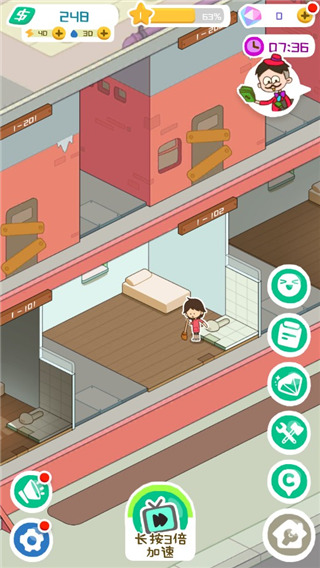 1、游戏玩起来轻松有趣,操作也是十分的简单,玩起来趣味性十足。 2、简洁美观的游戏画面,画风也是非常不错,里面的人物造型也十分可爱。 3、只有装修你的房子,玩家可以选择的主题风格,来吸引更多客人加入。 4、房东模拟器游戏体验轻松惬意,而且没有任何广告的出现,体验起来非常舒心。 5、丰富有趣的游戏玩法,而且游戏内容也是十分丰富,过上全新的包租婆生活。 6、开设属于你的公寓,体验一把开局一栋楼,日常收租的房东大佬生活。房东模拟器最新版本新手攻略