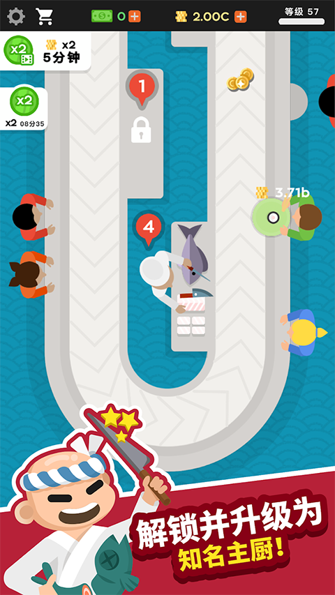 6、随着寿司店不断地升级,你还可以解锁更多厨师。