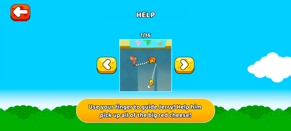 3、从杰瑞身上滑动屏幕到奶酪上,杰瑞就会自动行走收集;