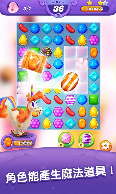 3、在游戏中玩家们必须将三个以上糖果在同一排或者同一列即可消除;