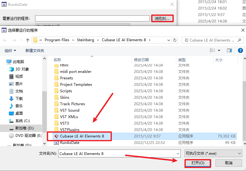 13、点击【浏览】选择【Cubase LE AI Elements 8】文件,点击【打开】。