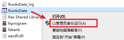 12、选中粘贴过来的【RunAsDate】可执行文件,右键选择【以管理员身份运行】。
