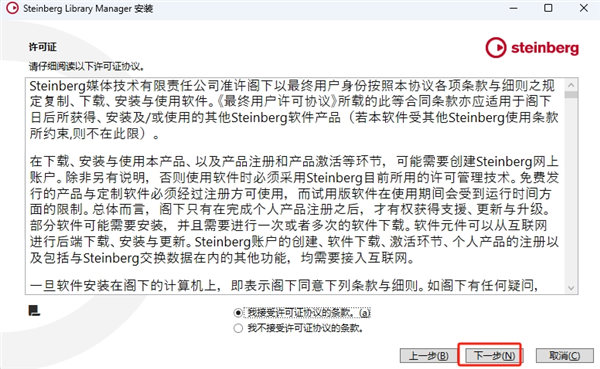 14、同意许可条款后继续,点击"下一步"按钮。